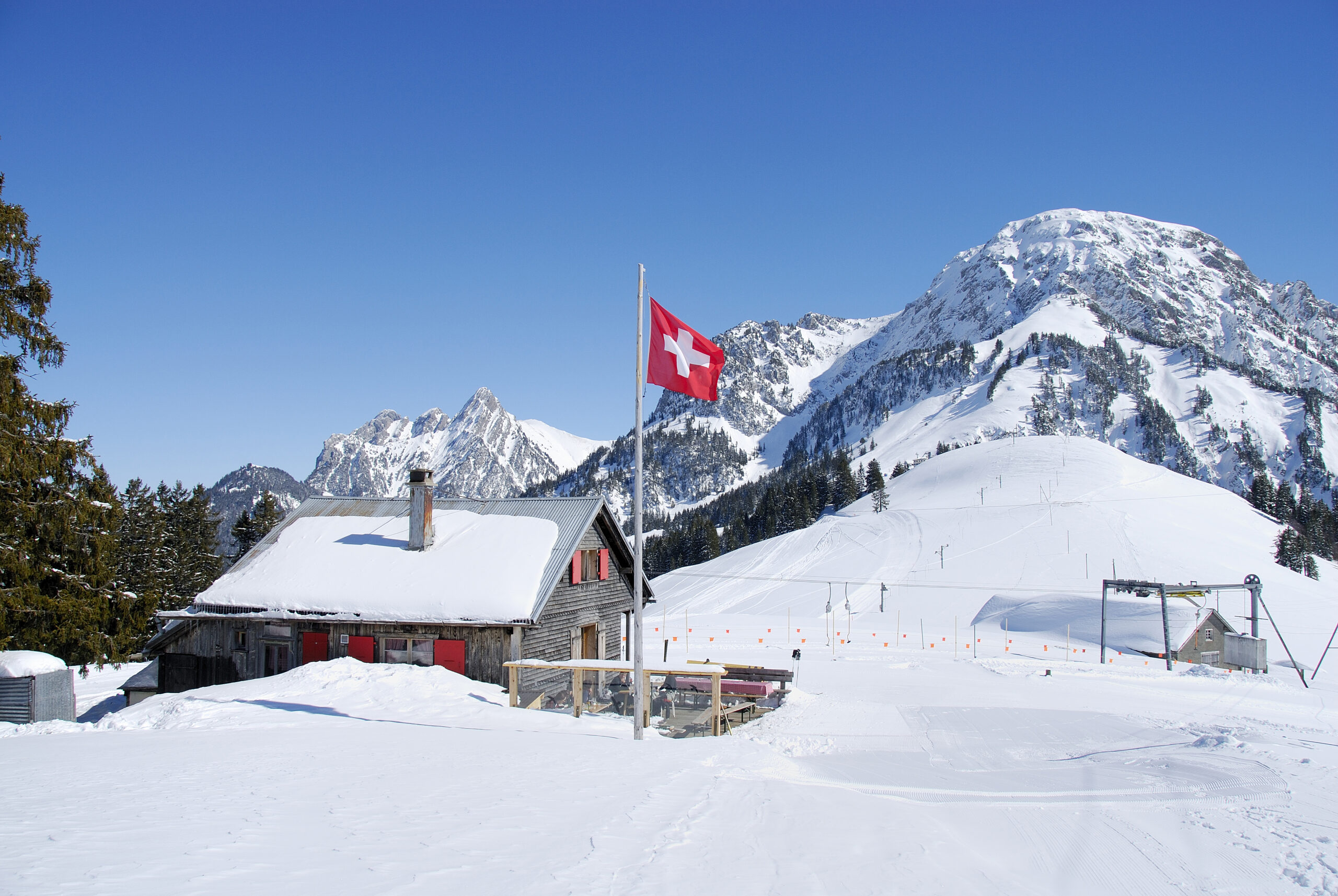 Depuis Rougemont, la télécabine vous transporte jusqu’à la Videmanette, perchée à plus de 2100 m. De là, profitez d’une vue splendide sur les reliefs environnants avant de vous lancer sur la plus longue descente du domaine, plus de sept kilomètres de pure glisse.